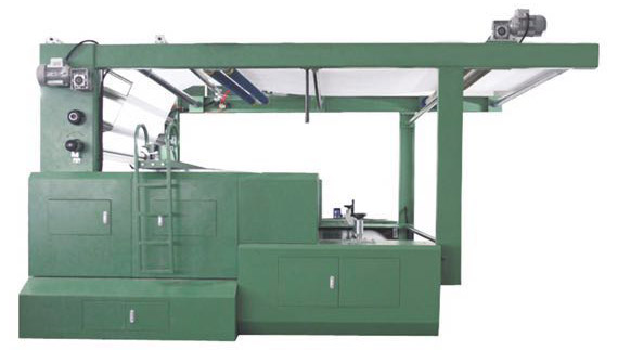 機(jī)頭進(jìn)布部分含有主機(jī)機(jī)頭、大輥簡以及無張力進(jìn)布系統(tǒng)。進(jìn)布系統(tǒng)通過數(shù)個導(dǎo)輥,張力調(diào)節(jié)輥,對中輥的綜合調(diào)節(jié),使面料能夠以良好的張力狀態(tài)附著于規(guī)定尺度的導(dǎo)帶上面,對于針織面料等高、高彈性的面料。可選擇專業(yè)面料儲存器等輔助裝置,以期達(dá)到面料的經(jīng)緯方向保持在同一個伸縮率上。