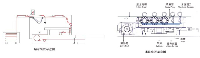導(dǎo)帶清洗直接關(guān)系到印花質(zhì)量,本機(jī)水洗裝置由3根尼龍毛刷,3根噴淋管及2根刮刀等組成,整個裝置為氣動結(jié)構(gòu),使導(dǎo)帶能達(dá)到最好的清洗效果。